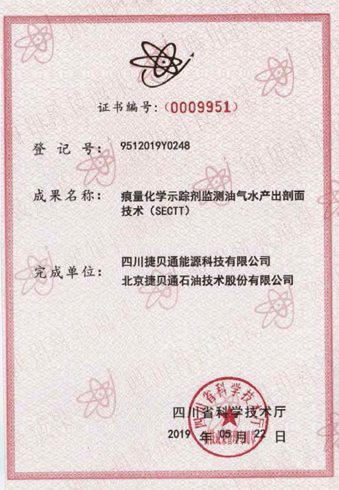 公司擁有暫堵產(chǎn)品相關(guān)專利4項,公司2項暫堵產(chǎn)品已通過四川省科技廳成果評價,研究成果達到國際先進水平,同時榮獲2019年第四屆ECF能源技術(shù)創(chuàng)新獎。