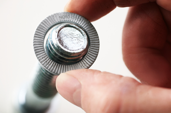 1982年洛帝牢集團(tuán)發(fā)明了Nord-Lock楔形制鎖墊圈,洛帝牢防松墊圈是利用楔形齒面的機(jī)械結(jié)構(gòu)增加預(yù)緊力防止螺栓松動(dòng),而不是依靠增加摩擦力。因此在劇烈振動(dòng)環(huán)境中也可確保螺栓防松功能。Nord-Lock防松墊圈已被廣泛應(yīng)用于軌道交通、風(fēng)電、化工、機(jī)械制造等眾多領(lǐng)域,產(chǎn)品性能經(jīng)過了幾十年的行業(yè)驗(yàn)證。