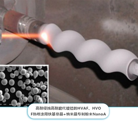 NanoA專利涂層用途為:高耐侵蝕耐磨的螺桿、長細管內(nèi)壁、液壓支柱、活塞、閥球、紡絲輥、拉絲塔輪的熱噴涂代鍍鉻、海水侵蝕等。