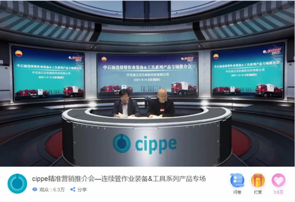 4月9日上午09:30-11:30,cippe精準(zhǔn)營銷推介會——江漢所連續(xù)管作業(yè)裝備工具系列產(chǎn)品專場準(zhǔn)時開播。本次線上推介會不僅得到參會企業(yè)和權(quán)威專家的認(rèn)同,也引起了廣大網(wǎng)友的共鳴。中石油江漢所精準(zhǔn)營銷推介會通過cippe線上直播平臺吸引了6.3萬人次在線觀看。