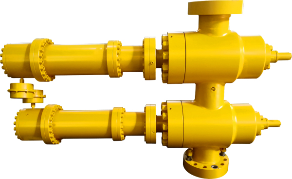 油管四通側(cè)出口內(nèi)配有閥拆卸堵,可帶壓更換兩側(cè)閘閥。