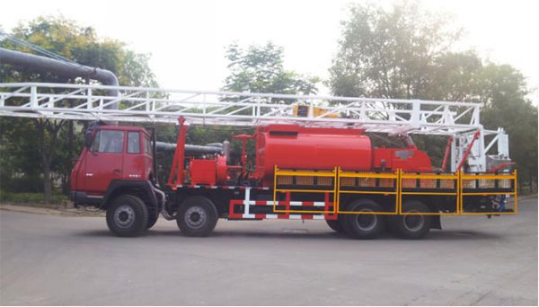 該車具有作業(yè)速度快,提升噸位大,傳動(dòng)系數(shù)配比合理、使用壽命長,井架安全系數(shù)高、安全可靠,控制可靠等特點(diǎn),是油田有力的增產(chǎn)設(shè)備之一。