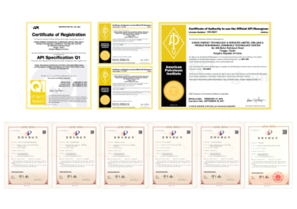 工程技術公司擁有自主知識產權成果440項,獲取ISO 9001 、API Q1等全面的質量管理體系認證、ISO 14001的環(huán)境管理體系認證以及API 11D1、API 14A、API 19V 等7個產品認證證書。