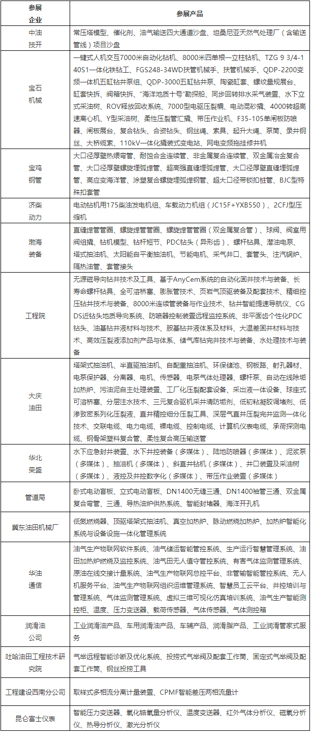 本屆展會(huì),中國石油裝備展團(tuán)重點(diǎn)展示產(chǎn)品與服務(wù)業(yè)務(wù)如下: