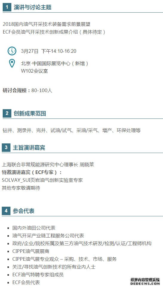 2018年3月27-29日,第十八屆中國國際石油石化技術(shù)裝備展覽會(cippe2018)將在北京·中國國際展覽中心(新館)舉行。展會同期,上海聯(lián)合非常規(guī)能源研究中心將于現(xiàn)場舉辦ECF“油氣開采與增產(chǎn)創(chuàng)新”交流研討會。上海聯(lián)合非常規(guī)能源研究中心理事長周曉萊女士將介紹國內(nèi)最為前沿的油氣開采與增產(chǎn)服務(wù)技術(shù)創(chuàng)新趨勢,展望市場需求與技術(shù)發(fā)展前景,同時特邀ECF專家分享最新的創(chuàng)新成果與產(chǎn)品?;顒蝇F(xiàn)場歡迎行業(yè)專家、參展企業(yè)、專業(yè)觀眾共同參與討論油氣開采技術(shù)裝備及增產(chǎn)服務(wù)的最新成果及產(chǎn)品。