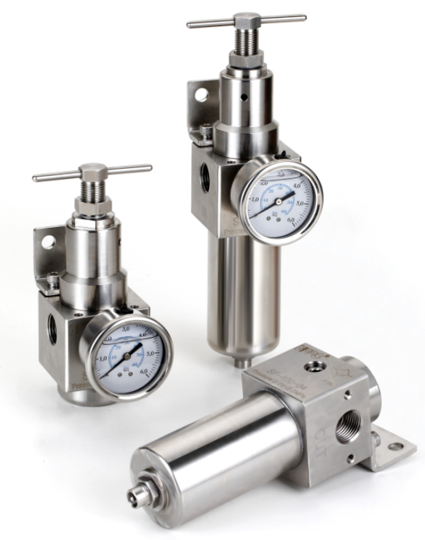 氣源處理件是壓縮空氣質(zhì)量的最后保證,它由過濾器、調(diào)壓閥和油霧器組成。過濾器用于過濾空氣源中的水分和污物,調(diào)壓閥 用于調(diào)節(jié)