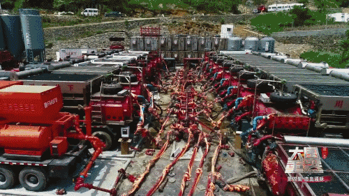 阿波羅渦輪壓裂車與其他杰瑞壓裂車組在浙江油田昭通頁巖氣示范區(qū)作業(yè)現(xiàn)場