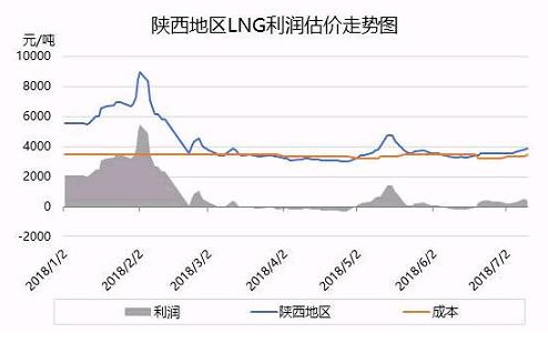 陜西地區(qū)LNG主流成交價(jià)格漲至3900-4000元/噸,內(nèi)蒙地區(qū)LNG主流成交價(jià)格漲至3900元/噸上下,較去年同期高出1000元/噸,實(shí)現(xiàn)夏季盈利狀態(tài)。