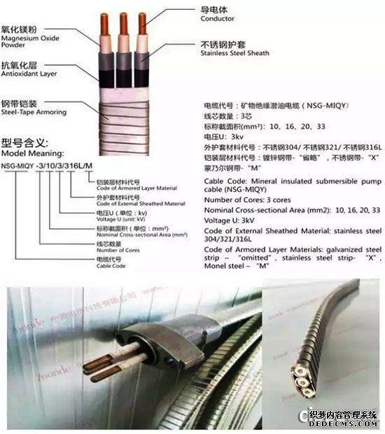 中德提供的礦物絕緣MI潛油泵電纜是由連續(xù)無縫的不銹鋼管作護套、單根銅桿作導電線芯、緊密壓實的高純度氧化鎂粉作絕緣體,采用特殊生產(chǎn)工藝制造而成。適用潛油電泵機組配套供電,具有耐油、耐壓、耐高溫、耐腐蝕、高強度的優(yōu)良電氣性能 , 非常適用于井下高溫區(qū),長期工作溫度最高可達650℃。同比普通潛油泵電纜使用壽命可達到的5倍以上,長期工作溫度高出2.5倍。