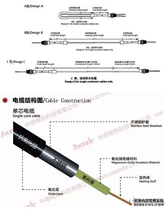 中德電熱公司不銹鋼礦物絕緣電纜分為加熱電纜和防火電纜,線芯采用單芯、雙芯合金絲,高純度、耐高溫、緊密壓實的電熔結(jié)晶氧化鎂作導熱絕緣體,連續(xù)無縫不銹鋼管作為護套,采用特殊生產(chǎn)工藝制造而成??梢詽M足耐高溫、大功率(269w/m)、耐腐蝕、高強度的需要。