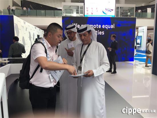 在ADIPEC展會現(xiàn)場,cippe 組委會工作人員分別拜訪了上述國際石油公司并達(dá)成多個合作意向。阿布扎比國家石油公司營銷活動相關(guān)負(fù)責(zé)人Sadi Mohammed先生對cippe非常感興趣。他表示,cippe石油展是在全球非常有影響力的展會,他們有意向參展、參觀cippe2019,并計(jì)劃在現(xiàn)場舉辦相關(guān)洽談活動。