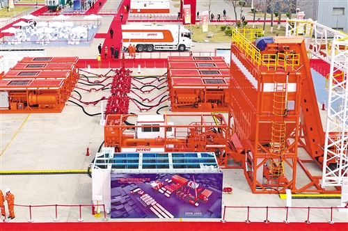 4月20日,全球首個電驅(qū)壓裂成套裝備在山東煙臺杰瑞集團亮相。成套裝備由電驅(qū)壓裂設(shè)備、電驅(qū)混砂設(shè)備、電驅(qū)混配設(shè)備、智能免破袋連續(xù)輸砂裝置等組成,能夠讓頁巖氣實現(xiàn)低成本、高效率、智能化開發(fā),加速頁巖氣開發(fā)進程。唐 克攝