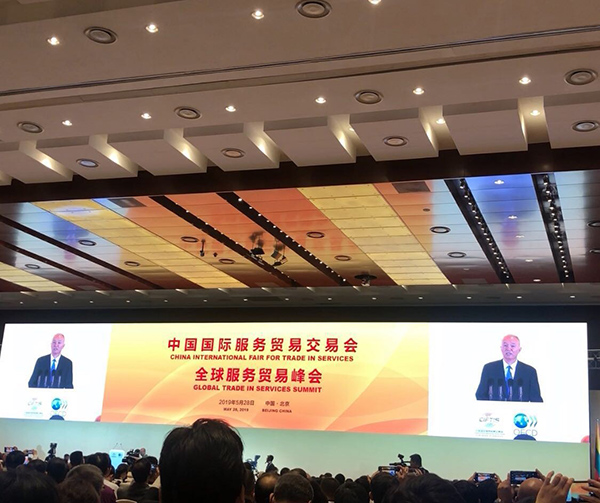 2019年5月28日-6月1日,中國(guó)國(guó)際服務(wù)貿(mào)易交易會(huì)在京盛大開(kāi)幕。28日上午,全球服務(wù)貿(mào)易峰會(huì)在北京國(guó)家會(huì)議中心召開(kāi)。2019年中國(guó)國(guó)際服務(wù)貿(mào)易交易會(huì)受到國(guó)家主席習(xí)近平的高度重視,專程發(fā)來(lái)賀信并指出:中國(guó)愿同各國(guó)深化服務(wù)貿(mào)易投資合作,促進(jìn)貿(mào)易和投資自由化、便利化,推動(dòng)經(jīng)濟(jì)全球化朝著更加開(kāi)放、包容、普惠、平衡、共贏的方向發(fā)展。